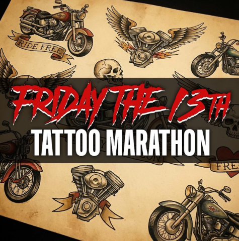 Tattoo Marathon at Desert Wind H-D. Flash art by Ed's Ink Freaks. $13 flash art + $7 tip = $20 cash only